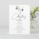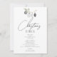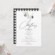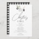 This minimalist Christmas party menu features a watercolor branch, fun patterned ornaments and calligraphy script text. The back is a watercolor black and white buffalo plaid.
