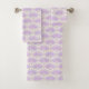 This lovely bath towel set features delicate lilac-lavender and silver flowers pattern on ivory white background.