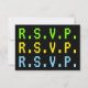This nerdy RSVP card design features the message "R.S.V.P." on the front. It also features a personalized RSVP form on the back for the recipient to complete. RSVP cards like this could perhaps be used to find out who will be attending a wedding shower, a birthday party, a baby shower, or some other celebration.