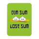 A cartoon image of two Dim Sum dumplings, one happy one sad, on a plate with chopsticks and the phrase "Dim Sum, Lose Sum" The back ground color can be changed, click on "Customize it" then click "Edit" then "Background" and choose color.