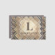 This Abstract, graphic photo, was transformed, into an exotic, monogram design, that resembles, a hand-woven, rug-displayed in glowing, colors of, taupe, bronze, tan, yellow, and black.
