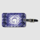 Reminiscent, of a Moroccan-style carpet, this abstract, monogram design, is displayed in-glowing, colors of, navy-blue, lavender, black, and white.