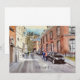 Modern watercolor city street scene in historic Dinant, Belgium from an original watercolor painting by Daniel Fishback.