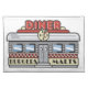 Retro classic vintage diner with burgers and malts. Clock under the sign. Red, silver, gray, black, white, light blue and pale yellow. You can change the background to any color.