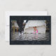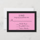 A fun and casual wedding rsvp, with a photograph of a couple in running shoes and wedding attire standing in a diner. The image focuses on the couples footwear. She has on bright pink bubblegum colored running shoes and really makes this mostly black and white image pop! She in her wedding gown and he in his tux. Very cute fifties style theme. The back has a black background with a bubblegum pink overaly where your RSVP information can be written in by your guests.