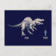 A spinosaurus v. man size chart captioned: "Diner Saurus" & "Dinner Sapiens." Blue/cream art, on t-shirts, hoodies, cards, gifts.