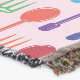 A quality printed throw has its advantages. This is a much finer weave throw than its loopier cousins, and though lighter, it is worth the investment for custom room accessorizing. The back is much prettier than the typical brown, and the fringe on the long sides very vivid, the selvage nicely done. Before photographing, I washed the throw in cold water, delicate, with a thicker woven throw the same size. On tumble dry low, this throw was dry in half the time as the other. This is a very practical quality if you use throws for furniture covers or to wrap up in frequently. The sleekness of the fabric makes it a great layer for accenting or protecting without the feeling of sitting on too much stuff. Perfect for napping or when you feel a light chill coming on. The color printing is beautiful and on this fabric, matched the design and color of my Photoshop image. This is an advantage for blending room fabrics and colors. The fringe on the short sides prints the colors from the design image and therefore varies from the side fringe. I streaked a white fractal line through the plaid pattern to give the illusion of weaving. This printed as crisp as an illusory thread, and put some white in the short side fringe, showing another advantage of print vs loomed- for artistic purposes, line lines, detail, and color integrity can be planned and preserved. My loomed throws have color limitations and more of a needlepoint texture. Print throws reproduce an exact image. The throw felt a little stiff straight out of the package, but this went away in the first delicate wash. Of course I searched the wash water for ink or bleeding and there was none.