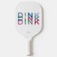This DINK personalized custom name pickleball paddle with turn heads on the court. A modern design with the word "DINK" in vibrant shades of pink, blue, yellow and green. Personalize the paddle with the initials or name of your choice. Makes a wonderful gift for the pickleball player in your life or treat yourself. Part of a collection from Parcel Studios.