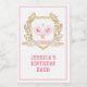 This wine label has a watercolor image of a crest surrounded by floral branches with green and pink gingham pickleball paddles in the center. Text says "Dinks and Drinks." Colors used include moss green, blush pink and and tan. You can personalize with a name and birthday year.