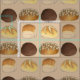Illustration features a delicious assortment of dinner bread rolls (classic dinner roll, kaiser roll, pumpernickel roll, and whole wheat roll with oats). Ideal for your favorite foodie, or as decor for a "bun in the oven" themed baby shower.