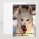 Photo of white Siberian Husky licking chops adorns this dinner invitation and adds a touch of humor, in this play on your guest being dinner.
