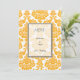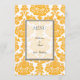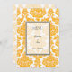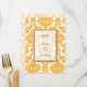 dinner menu card, yellow,damask.for weddings, anniversary, engagement, graduation, meetings.