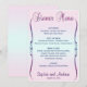 This elegant dinner menu in shades of pink, purple and blue pastels with a slight touch of glitter look can be customized. You can change the font and colors of most of the text and even the background color. Designed by Amelia Carrie and sold exclusively through GlitterInvitations.com Note: This is a graphic print reproduction or artwork and contains no messy glitter.