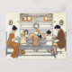 From an old book. The family saying prayer before dinner. A simple table with benches on each side for children and regular chairs at either end for Mother and Father. Set in front of a fireplace