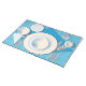 Cute dinner-setting placemat. Great for adults but can also be used to teach children how to set a table by placing dinnerware and utensils in the right locations. Similar designs are available in other color/print combinations with or without text to identify pieces.