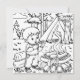 Cute coloring page with a with a camping theme. A little boy eating a hot dog that just came off the grill at his campsite.