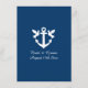 Dinner wedding menu with nautical boat anchor logo. Navy blue and teal color palette. Elegant template for classy marriage. Part of budget friendly collection set including stationery and decorations. Ship anchor and doves design.