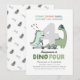 Get ready for a ROAR-some celebration with our Dino-Four Birthday Party Invitation! Perfect for your little paleontologist turning four, this fun and vibrant design features playful dinosaurs, lush prehistoric landscapes, and bold typography. Personalize it easily with your child's name, party details, and special messages to make it uniquely yours.