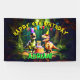 Dino four colorful dinosaur birthday party happy birthday personalized name template banner, dinosaurs wearing party hats with a birthday cake dinosaur birthday banner