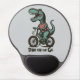 Dino on the Go, this cute kids dinosaur design features a dinosaur riding a bicycle with text saying "Fino on the go".
