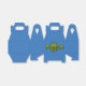 Party favor box shown in blue in a gable style with a cute cartoon dino. Customize this item and add your own text or buy as is and add some pretty ribbon.