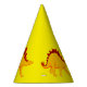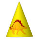 Party hat is shown in yellow with a cute dinosauer print.