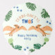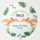 Celebrate your kid's second year of life with this cool pterodactyl birthday party balloon. This funny dinosaur balloon has green blue and orange color scheme and safari theme. Perfect for your little one's wild ride through the terrible twos. Personalize it with your event details. Unisex design for a boy or girl.