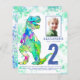 For the boy who’s turning two and who loves dinosaurs. This Roaring T-Rex invites Dino fans to a fun 2nd birthday party. Personalize this colorful watercolor splash blue and green second birthday invitation with a photo of the birthday boy, the number of the birthday and the party details and you are all set for a fun packed dinosaur themed dino birthday. All dinosaur species are welcome. Unique beautiful original artwork by artist Catherine Sweetman