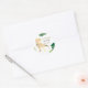 Funny dinosaur 4th birthday party stickers with gold watercolor tyrannosaurus rex and green leaves. Personalize it with your event details. Great for a prehistoric bday party. Unisex design for boy or girl.