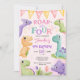 Dinosaur 4th Birthday Pink Cute Roar Into Four Invitation