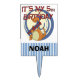 A cute dinosaur wearing a birthday hat, a birthday gift, and text that reads "It's My 5th Birthday" on a Dinosaur 5th Birthday cake topper.