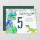 This green colorful Roaring T-Rex and velociraptor invite Dino fans to a birthday party for dinosaur lovers. Personalize this budget Tyrannosaurus and velociraptor birthday party invitation with the name of the birthday boy or girl, the number of the birthday and the party details and you are all set for a fun packed dinosaur jungle themed dino birthday. All dinosaur species are welcome. Prehistoric jurassic era Dinosaur illustrations, original artwork by artist by Catherine Sweetman