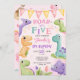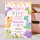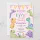Dinosaur 5th Birthday Pink Cute Roar Into Five Invitation