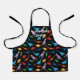 A pattern made out of seven colorful dinosaur silhouettes. There is a Tyrannosaurus Rex, a Pterodactyl, a Triceratops, a Velociraptor, a Stegosaurus, a Brontosaurus, and an Elasmosaurus for the cutest sous-chefs or chefs! Personalize away, or delete the text.