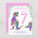 Colorful dinosaur 7th birthday party pink budget invitation. Celebrate the girl that loves dinosaurs turning seven with this Roaring pink and purple colorful T-Rex and cute stegosaurus inviting Dino fans to a 7th birthday party. Personalize this colorful psychedelic Tyrannosaurus and stegosaurus Jurassic jungle invitation by adding the name of the birthday boy or girl, the number of the birthday and the party details and you are all set for a fun packed dinosaur pink themed dino birthday. All dinosaur species are welcome. Prehistoric jurassic era Dinosaur illustrations, original artwork by artist by Catherine Sweetman