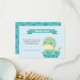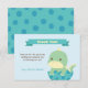 A baby shower thank you with a cute little green dinosaur with light yellow spikes hatching from an egg. On the reverse is a dots pattern using the same pattern from the egg. Personalize with your baby shower thank you message in the space provided.