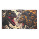 This pillow case has a dinosaur fighting a lion on it.