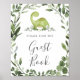 Give your guests a lovely direction with our dinosaur guestbook sign, featuring watercolor greenery eucalyptus garland and elegant handwritten style font.