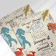 Plain white envelopes are included with paper invitations and will come to fit the invitation size you select. If you don’t need the envelopes, you may choose to not receive them by selecting the dropdown below "Envelopes" and choosing "None." If you’d like to have a design on your envelopes, you can browse all of these available envelopes to find the design that complements your Dinosaur Birthday Invitation For Two Names Ages.