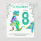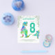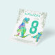 For the child that loves dinosaurs this Roaring colorful T-Rex and cute stegosaurus invite Dino fans to a 8th birthday party for dinosaur lovers. Personalize this colorful psychedelic Tyrannosaurus and stegosaurus invitation by adding the name of the birthday boy or girl, the number of the birthday and the party details and you are all set for a fun packed dinosaur teal green themed dino birthday. All dinosaur species are welcome. Prehistoric jurassic era Dinosaur illustrations, original artwork by artist by Catherine Sweetman