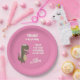 Dino themed birthday party paper plate easily personalised with your own details. Background colour can be changed.