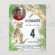 A fun Jurassic jungle foliage in green and brown watercolor splash dinosaur 4th birthday party budget invitation for the boy who loves dinos. These Roaring T Rex annd flying pterodactyl invite Dino fans to a fourth birthday party. Personalize this Tyrannosaurus rex and pterodactyl design with a photo, the number of the birthday and the party details and you are all set for a fun packed dinosaur themed dino birthday. All dinosaur species are welcome. Original artwork Illustration by Catherine Sweetman