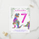 Celebrate turning seven in dinosaur style. This Roaring colorful T-Rex and cute stegosaurus invite Dino fans to a 7th birthday party for dinosaur lovers. Personalize this colorful psychedelic Tyrannosaurus and stegosaurus invitation by adding the name of the birthday boy or girl, the number of the birthday and the party details and you are all set for a fun packed dinosaur pink themed dino birthday. All dinosaur species are welcome. Prehistoric jurassic era Dinosaur illustrations, original artwork by artist by Catherine Sweetman