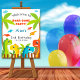 Welcome your guests in dino-mite style with this colorful dinosaur birthday sign! Featuring cheerful red and yellow dinosaurs with palm trees and editable text, this playful welcome sign is perfect for kids' birthday parties or themed celebrations. Personalize it with your child’s name and age to create a fun, custom entrance to the party. A great way to set the tone for a roar-some day!
