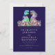 The design includes elegant modern blush pink script typography that’s easy to personalize simply add the bride and groom’s names, wedding date, and all your special details. Set against a rich elegant navy blue background, this invitation blends whimsical dinosaur art with chic modern style.