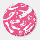 Pink and white Dinosaur bones repeating pattern! Dinosaurs featured in this design include: Tyrannosaurus Rex, Allosaurus, Parasaurolophus, Triceratops, Brachiosaurus, Spinosaurus, and Velociraptor.