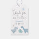 Cute dinosaur theme boy's birthday party favor tag featuring illustration of dinosaurs with stars. The text says "thank you for stomping by."