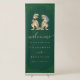Welcome your guests with a playful touch of dino-love on your special day with this jurassic dinosaur-themed wedding welcome retractable banner. Featuring fun T-Rex bride and groom in brown beige hues with green eucalyptus foliage on a rich dark green background, perfect for couples who share a love for dinosaurs. The unique Tyrannosaurus rex illustrations bring a lively and joyful atmosphere to your wedding sign decor. With easy-to-use templates and modern elegant script typography, personalizing this poster for your big day is a breeze. Designed by the talented artist Catherine Sweetman, this original artwork adds a playful, one-of-a-kind touch to your celebration, making it an unforgettable way to greet your guests.