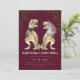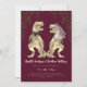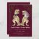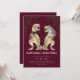 Make your wedding unforgettable with this funny dinosaur-themed wedding invitation, featuring a watercolor T-Rex bride and groom in brown beige tones. Surrounded by lush eucalyptus jungle foliage and set against a rich burgundy background, this modern Jurassic design is perfect for couples who love dinosaurs and want a unique, whimsical twist on their wedding stationery.