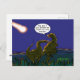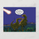 Dinosaur Cartoon: We Create Our Own Destiny personalized postcard. I believe we create our own destiny says one dinosaur to the other with the asteroid that brings about their extinction in view in the background. In this funny Humasaurus™ postcard with original comic art and concept by Avey-Jones, two dinosaurs walk nonchalantly, having a philosophical conversation about destiny, unaware that the comet that will cause their own extinction is heading right for them. The satire in this humorous postcard parodies human beings today and is sure to bring smiles to all recipients, whether they subscribe to New Age thought, predestination, or any other philosophy. Brighten someone's day and make a point with a Humasaurus™ cartoon by Avey Jones. Find more funny postcards at out store zazzle.com/TheRightNote.